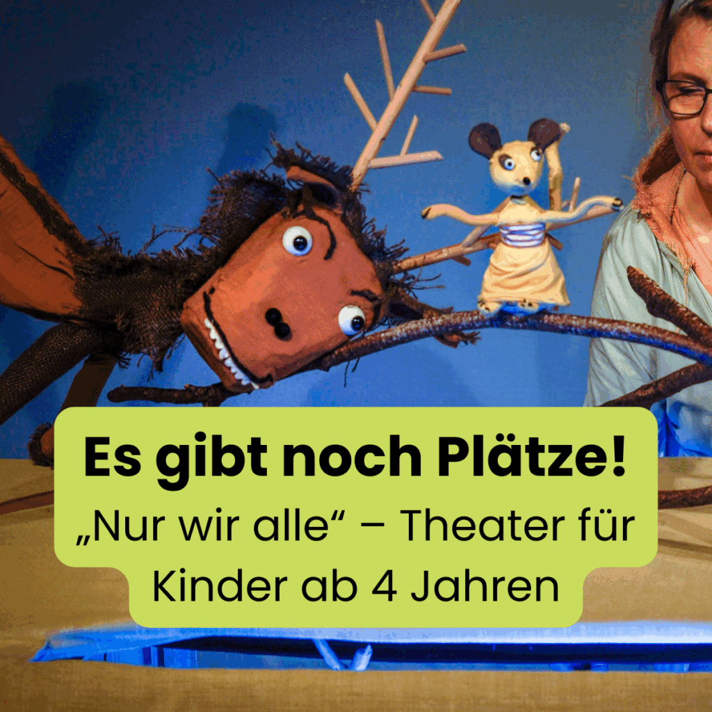 In unserem Stück „Nur wir alle“ erleben Kinder ab 4 Jahren, wie verschieden man sein darf – und wie schön es ist, zusammenzuhalten. Mit viel Musik, Witz und Herz erzählen Maus, Hirsch, Fisch und Erdmännchen von Freundschaft, Mut und Vertrauen.