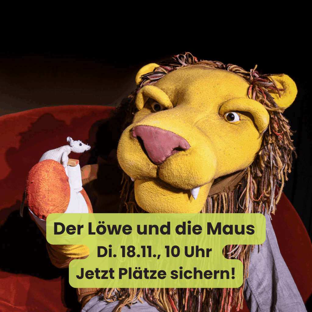Am Dienstag, 18.11.25 um 10 Uhr spielen wir zum letzten Mal „Der Löwe und die Maus“ – ein warmherziges Theatererlebnis für Kinder ab 5 Jahren.